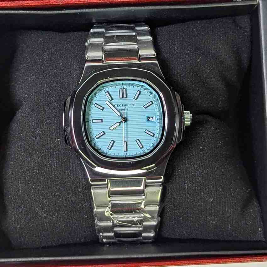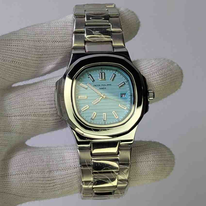 ⌚ Patek Philippe Nautilus – Stainless Steel Watch |sky Blue Dial & Golden Silver Band (40mm)